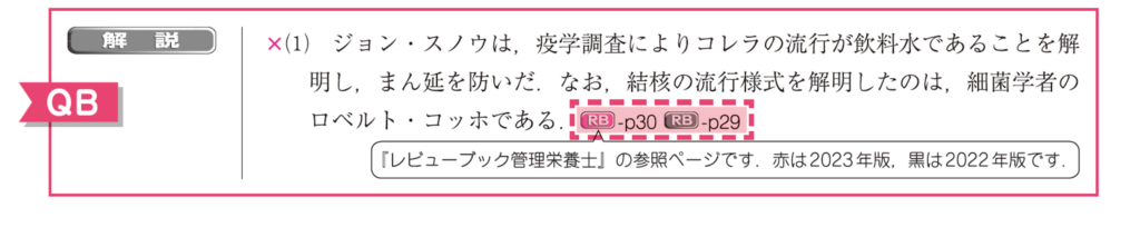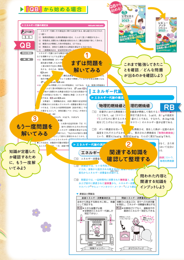 『QB』で問題を解いたら、『RB』で関連する知識を確認しましょう。このとき、出題されていた内容だけでなく、関連する知識を確認することで出題のされ方やテーマが少し変わっても対応する力がつきます。