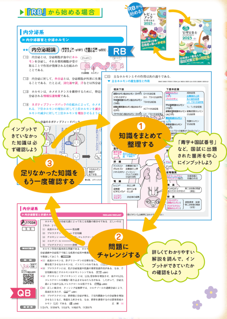 まだ必修科目を学び終えていない人や、まずは知識をまとめて整理したい人は、『RB』から対策を始めるのがオススメです。次の①~③を繰り返して力をつけていきましょう!
