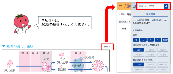小項目の中に登場する国試番号を電子版『QB管理栄養士』の検索機能で検索する。