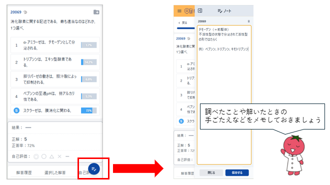 追加で調べたことや、よくわからなかったこと(今後の課題)などをノート機能でメモしておきましょう。後で解きなおした時の参考になります。