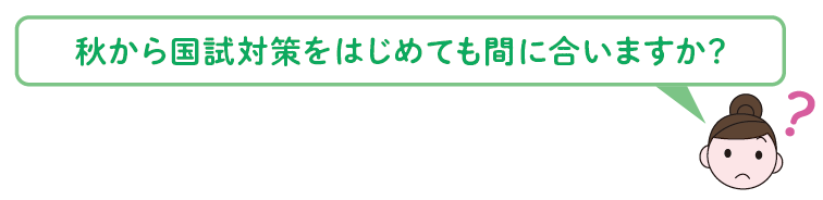 大丈夫です.毎年の受験生アンケートでも,9月以降に国試対策を本格的にはじめて合格した人が3割り程度(新卒受験生)もいました.ただ,その場合は残り時間や効率を意識する必要があるのでここで説明します.