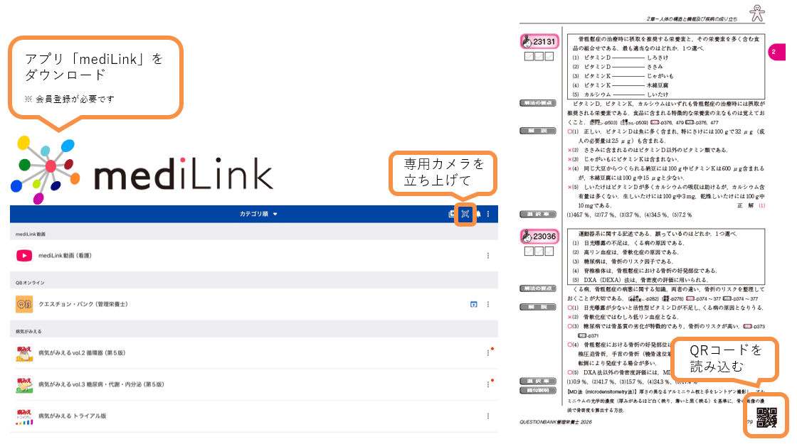 特典コンテンツを利用するために、弊社サービス「mediLink」にアカウント登録したうえで、『QB2026』付属のシリアルコードを登録する必要があります。
